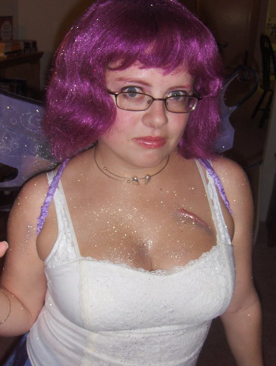 I kind of dressed up as the alcohol fairy. No, that's not my real hair; I have several wigs. I know you love it. Here's a better shot of it: